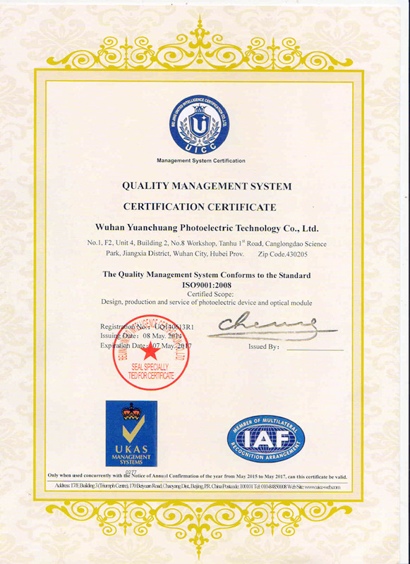 ISO9001:2008 quality system certification